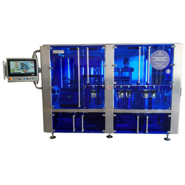 La Serie VRI VI fue desarrollada para la inspección de jeringas precargadas, garantizando altos estándares de calidad. Este sistema realiza inspección visual automática y prueba de integridad de cierre con tecnología de alto voltaje integrada, operando a velocidades de hasta 400 piezas por minuto.